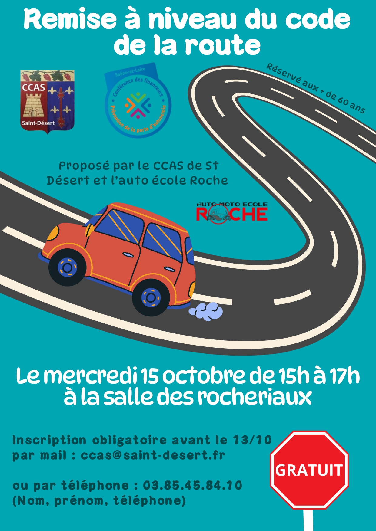 L’auto-école ROCHE, en partenariat avec la municipalité et le CCAS, a organisé une après-midi dédiée à l’actualisation des règles de conduite, ouverte à l’ensemble des habitants.