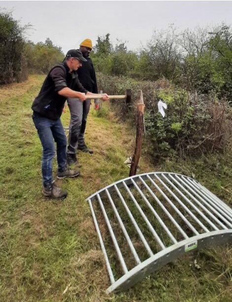 La pose du passage canadien par Mr Guillaume MUGNIER, agriculteur Jamblois, qui a accompagné les équipes bénévoles.