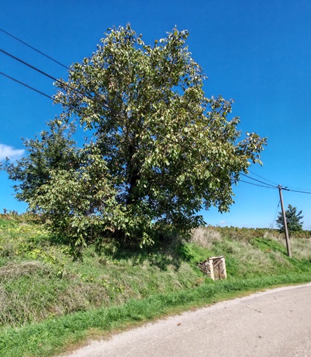 C'est rue du Mont Avril, en direction de Montbogre, qu'un gros nid de frelons asiatiques, toujours en pleine activité, a été repéré dans un noyer aux abords des vignes et près de la source.