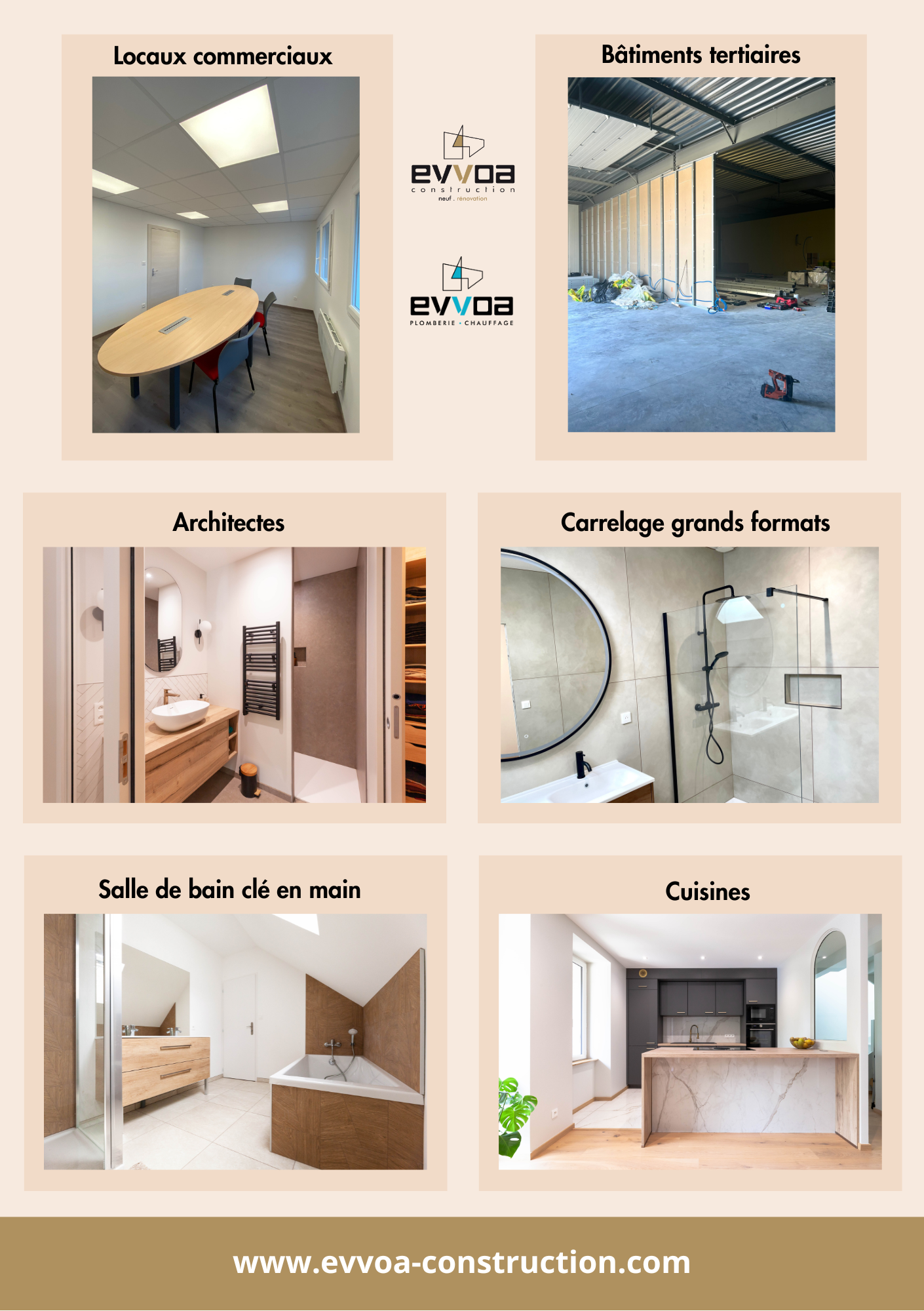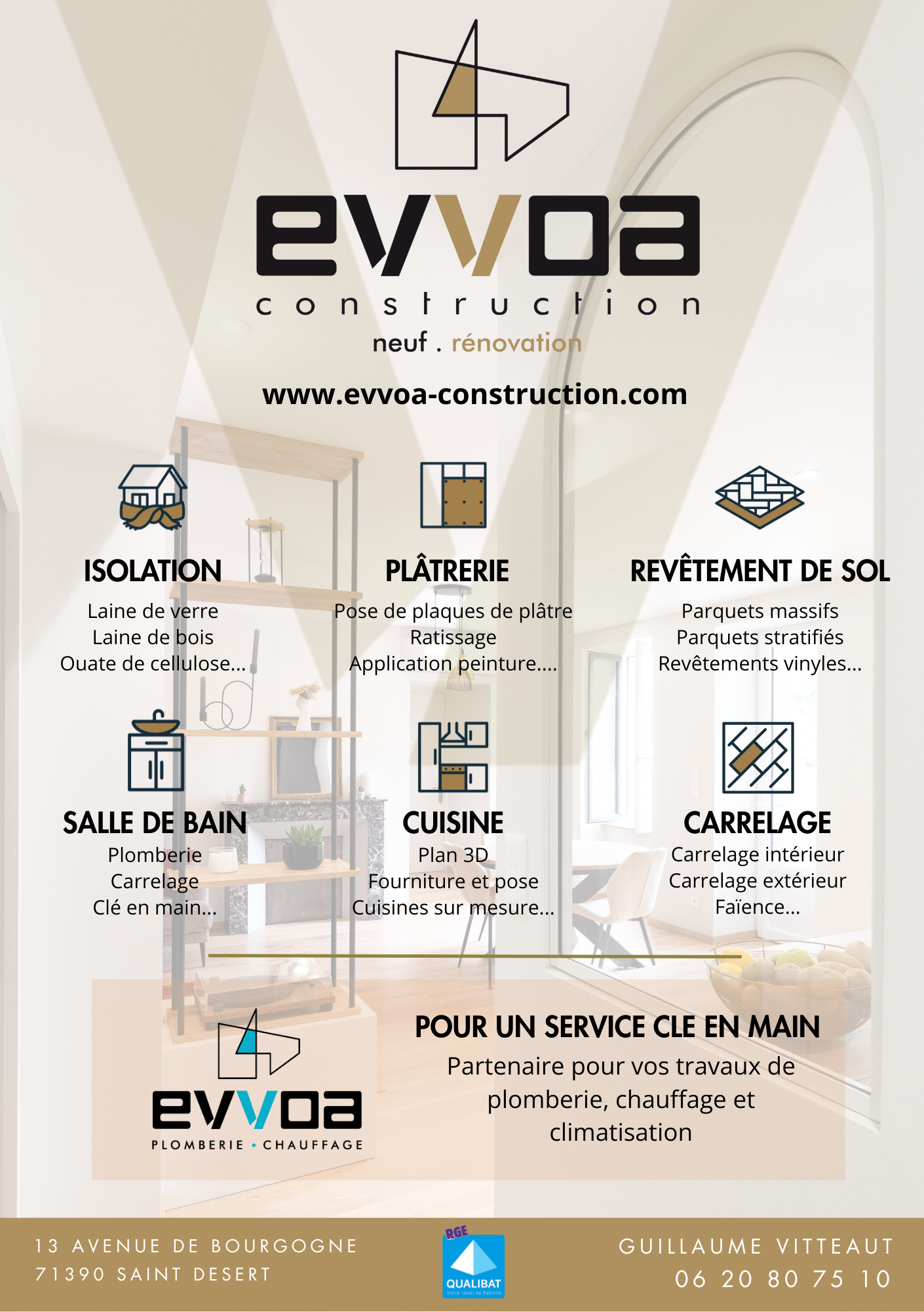 EVVOA Construction est une entreprise de travaux d’aménagement et de rénovation intérieure située sur Saint-Désert. Elle est spécialisée dans les travaux d’isolation, plâtrerie, peinture, revêtement de sol, aménagement de salles de bain, aménagement de cuisines et dans la coordination de travaux sur des projets de rénovation complet d’appartements et de maisons.